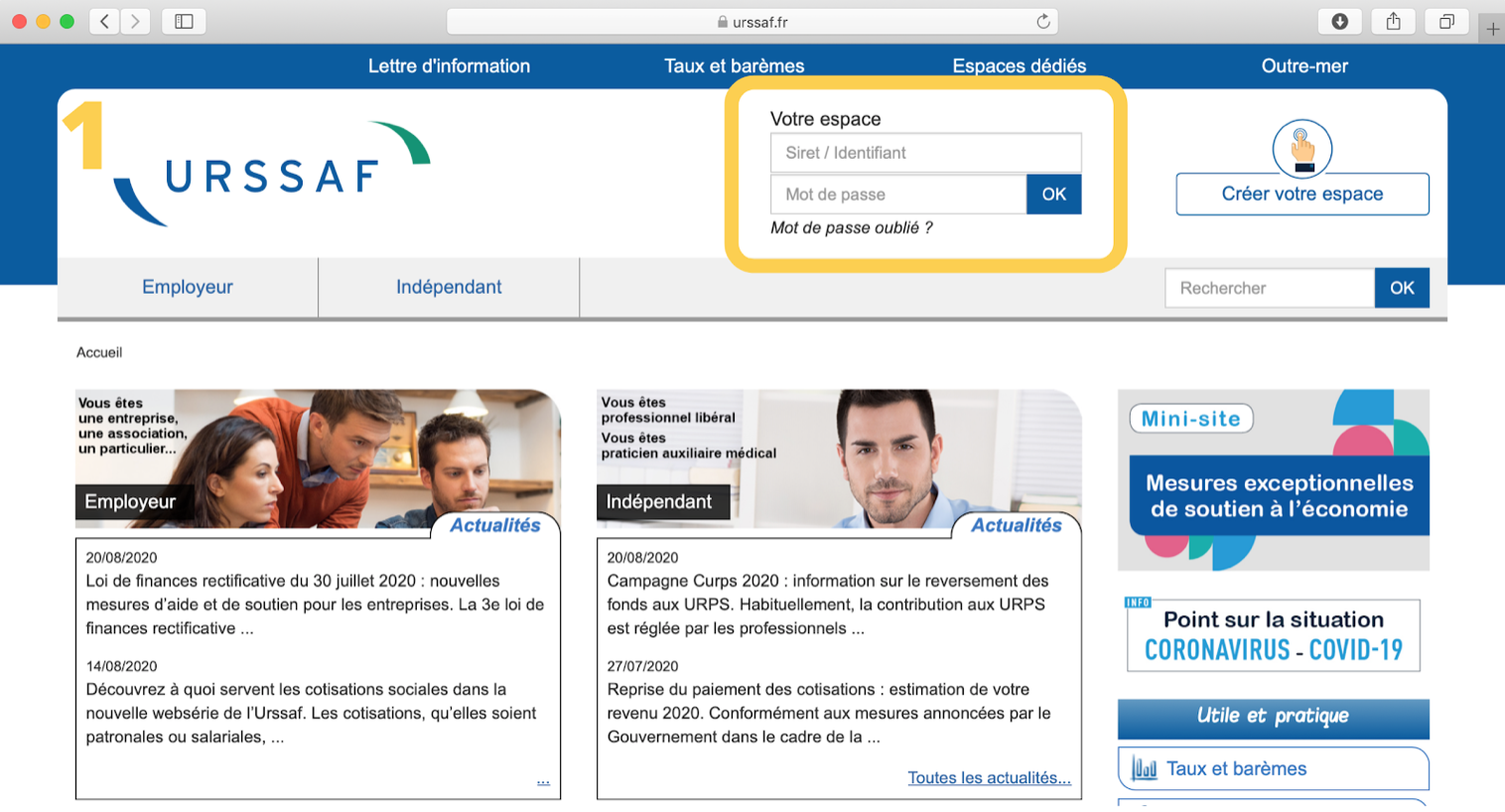 Étapes pour se connecter à son compte Urssaf